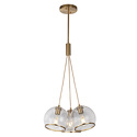 Подвесной светильник стиля модерн для гостиной, кабинета, кухни, прихожей или спальни имеет размеры 440x1960 мм. Арматура светильника окрашена в латунный цвет. Лампы в комплекте - отсутствуют. В светильнике применяются лампы накаливания или светодиодная LED-лампа. Цвет плафонов - неокрашенный с каймой, с прозрачной поверхностью. Материал плафонов - металл, стекло. Класс электробезопасности - I, степень пылевлагозащиты (IP) - 20. Максимальная мощность лампы (Вт) - 40. Светильник размещается на потолоке.