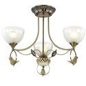 Потолочная люстра стиля флора для гостиной, кабинета или спальни имеет размеры 590x415 мм. Арматура светильника окрашена в бронзовый цвет. Лампы в комплекте - отсутствуют. В светильнике применяются лампы накаливания или светодиодная LED-лампа. Цвет плафонов - белый, с матовой поверхностью. Материал плафонов - стекло. Класс электробезопасности - I, степень пылевлагозащиты (IP) - 20. Максимальная мощность лампы (Вт) - 40. Светильник размещается на потолоке.