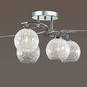 Потолочная люстра стиля модерн для гостиной, кабинета или спальни имеет размеры 910x470x270 мм. Арматура светильника окрашена в хромовый цвет. Лампы в комплекте - отсутствуют. В светильнике применяются лампы накаливания или светодиодная LED-лампа. Цвет плафонов - неокрашенный с рисунком, с прозрачной поверхностью. Материал плафонов - стекло. Класс электробезопасности - I, степень пылевлагозащиты (IP) - 20. Максимальная мощность лампы (Вт) - 60. Светильник размещается на потолоке.