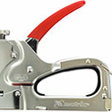 Мощный стальной степлер. Регулируемая сила удара обеспечивает прекрасное крепление к основе из любого материала. Универсальный механизм дает возможность использования 4 разных видов скоб 36, 140, 300 (гвозди) и 500 (штифты) типа.