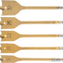 Комплектация- набор сверл перовых по дереву: 10, 12, 16, 18, 20, 25 мм- удлинитель 300 мм- угловой шестигранник