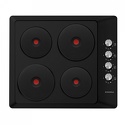 Поверхность: варочная панель • Тип поверхности: электрическая • Рабочая поверхность: эмаль • Число конфорок: 4 • Установка: независимая • Электрические конфорки: чугунные; всего - 4 (2 конфорки быстрого разогрева) • Конфигурация электрических конфорок: 2 x 145 мм 1500 2 x 180 мм 1500 • Тип управления: механическое • Переключатели: поворотные • Максимальная потребляемая мощность: 6000 Вт