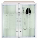 Закрытая кабина, полностенная, комбинированная с ванной, двери раздвижные, материал поддона: акрил, материал стенок: стекло, тропический душ, вертикальный гидромассаж, габариты (ШхВхД): 80x223x150 см
