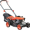 Колесная газонокосилка , бензиновый 4х тактный двигатель, 123 см³, 3.5 л.с., тормоз двигателя, ширина скашивания 42 см, регулировка высоты скашивания (30-75 мм), функция мульчирования жесткий травосборник,23 кг