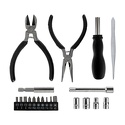 Комплектация- тонкогубцы, имеют возвратную пружину;- кусачки, имеют возвратную пружину;- пинцет;- отвертка со сменными наконечниками - 10 шт. (TORX, крестообразные, шлицевые);- удлинитель для бит;- торцевые головки – 4 шт.;- удлинитель для торцевых головок;- часовые отвертки для работы с малоразмерными деталями - 6 шт. (4 шлицевых и 2 крестообразных).