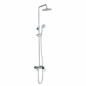 Устройство: душевая система • Смеситель: джойстик • Ручная лейка: размер 100 мм, настройки 3 шт • Верхний душ: размер 200 мм, настройки 1 шт • Комплектация: ручной душ, смеситель, стойка, шланг, крепление ручного душа