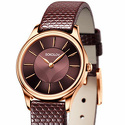женские наручные часы • кварцевые • корпус золото • кожаный ремешок