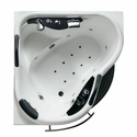 Материал: акрил • Расположение: отдельно стоящая, угловая конструкция • Форма: четверть круга • Количество мест: одноместная • Гидромассаж: есть • Подсветка: есть • Комфорт: подголовник, ручки • Смеситель в комплекте: есть • Размеры (ДxШxВ): 138x138 см