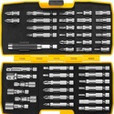 Комплектация- Набор из 20 бит, 25 мм (SL 3, 4, 5, 6, 8; PH 2, 2; PZ 2x2; HEX HOLE 3, 4, 5, 6; ORX HOLE 10, 15, 20, 25, 27, 30, 40)- Набор из 17 бит, 50 мм (PH 1, 2, 2, 3; PZ 1, 2x2, 3; HEX 3, 4, 5, 6; TX 10, 15, 20, 25, 30)- Торцевые головки: 6, 7, 8, 10- Магнитный адаптер для бит- Переходники: HEX1/4"-SQ1/4", HEX1/4"-SQ3/8"