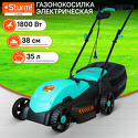 Производитель: Sturm Модель: EL1838 - колёсная газонокосилка - электрический двигатель 1800 Вт (2.44 л.с.) - ширина скашивания: 38 см Описание