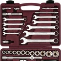 КомплектацияГоловки торцевые 1/4"DR, 13 шт. 4, 4.5, 5, 5.5, 6, 7, 8, 9, 10, 11, 12, 13, 14 ммТрещоточная рукоятка 1/4"DR 150 мм, 48 зубцовВороток Т-образный 1/4"DR 110 ммШарнир карданный 1/4"DR 35 ммУдлинители 1/4"DR, 2 шт. 50, 100 ммГибкий удлинитель 1/4"DR 150 ммОтверточная рукоятка 1/4"DR 150 ммАдаптер для вставок-бит 1/4"DR х 1/4"НDRВставки-биты 1/4"HDR L=25 мм, 17 шт. (РН) 1, 2; (PZ) 1, 2; (H) 3, 4, 5, 6 мм; (SL) 4, 5.5, 7 мм; (T) Т8, Т10, Т15, Т20, Т25, Т30Головки торцевые 1/2"DR, 12 шт. 14, 15, 16, 17, 18, 19, 21, 22, 24, 27, 30, 32 ммГоловки свечные 1/2"DR, 2 шт. 16, 21 ммТрещоточная рукоятка 1/2"DR 250 мм, 48 зубцовУдлинители 1/2"DR, 2 шт. 125, 250 ммШарнир карданный 1/2"DR 70 ммАдаптер трехсторонний 1/2"DRАдаптер для вставок-бит 1/2"DR х 5/16”HDRВставки-биты 5/16” HDR L=30 мм, 15 шт. (РН) 3, 4; (PZ) 3, 4; (T) Т40, Т45, Т50, Т55 (SL) 8, 10, 12 мм; (H) 8, 10, 12, 14 ммКлючи комбинированные, 9 шт. 8, 10, 11, 12, 13, 14, 17, 19, 22 мм