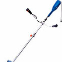 Двигатель: электрический, тип триммера: переносной, мощность электродвигателя: 1400 Вт, режущий элемент триммера: леска и нож, ширина скашивания: 42 см, конструкция штанги: прямая, плечевой ремень, количество колес: нет