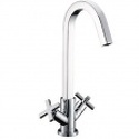 Назначение: кухонный • Конструкция: с раздельными клапанами • Монтаж: горизонтальный • Клапан: керамический • Материал: покрытие - хром • Подводка: гибкая • Монтажные отверстия: 1 отверстие • Форма излива: традиционная • Душевая лейка в комплекте: нет • Аэратор: есть • Донный клапан в комплекте: есть