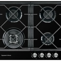 Поверхность: варочная панель • Тип поверхности: газовая • Рабочая поверхность: закаленное стекло • Число конфорок: 4 • Установка: независимая • Газовые конфорки: всего - 4 (1 конфорка "Тройная корона") • Газ-контроль конфорок: есть • Тип управления: механическое • Переключатели: поворотные • Электроподжиг: есть, автоматический • Размеры: 584x510x50 мм • Цвет: панель - черный