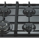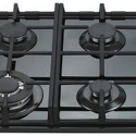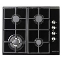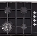 Варочная поверхность, газовая, панель из закаленного стекла, 4 газовые конфорки, трехконтурная конфорка, переключатели поворотные, электроподжиг