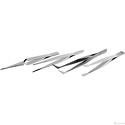 Комплектация- Пинцет самозажимной с тонкими губками 120мм;- Пинцет с изогнутыми губками 120мм;- Пинцет прямой 120мм;- Пинцет с широкими губками 120мм.